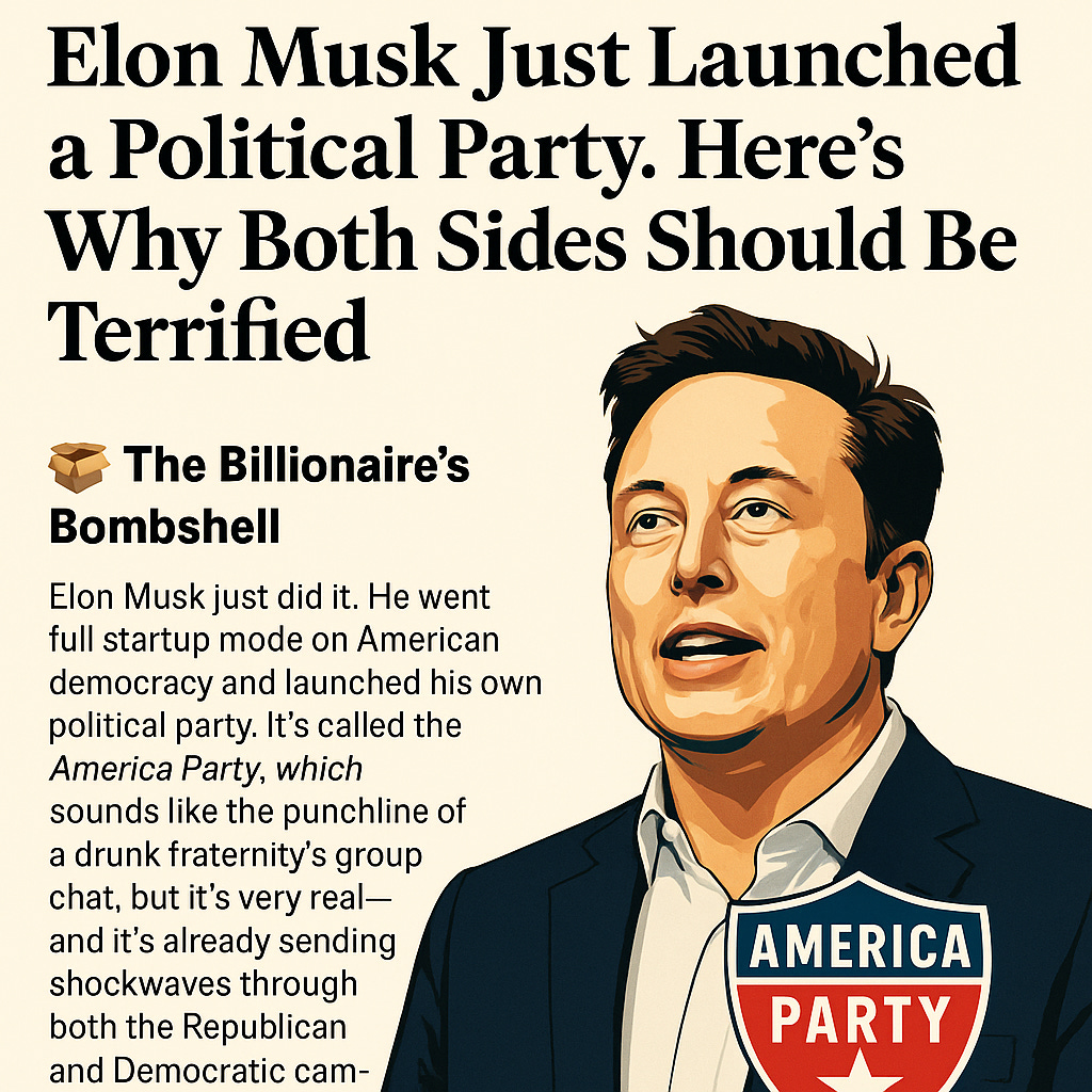 Elon Musk just did it. He went full startup mode on American democracy and launched his own political party. It’s called the America Party, which sounds like the punchline of a drunk fraternity’s group chat, but it’s very real—and it’s already sending shockwaves through both the Republican and Democratic camps.