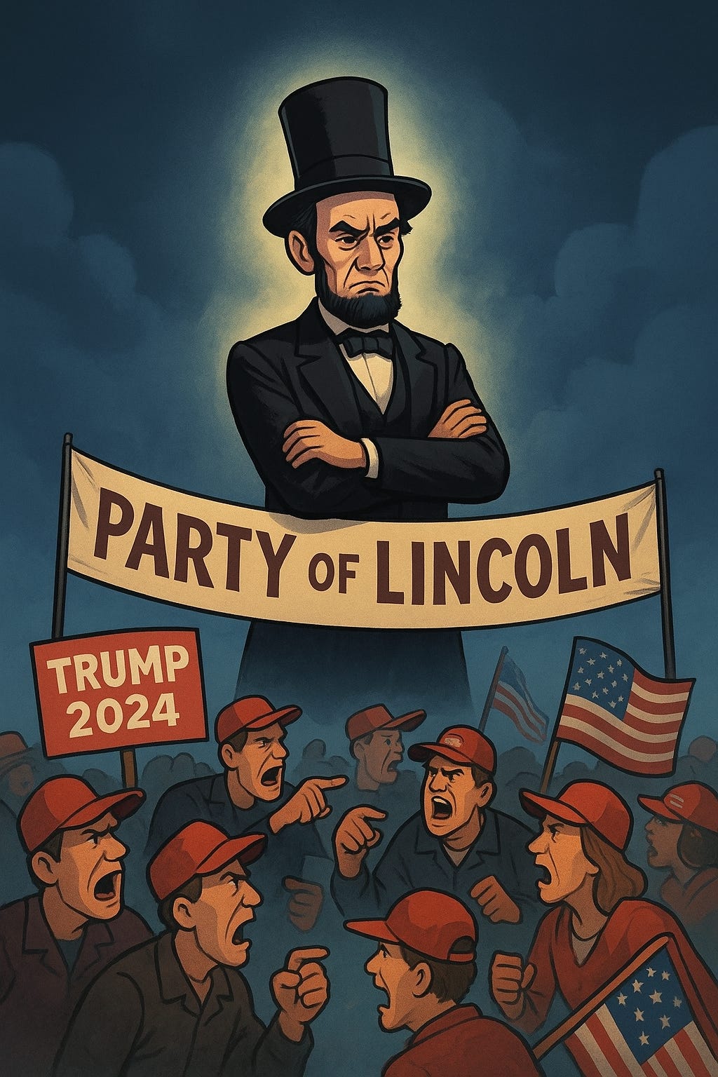 The “party of Lincoln” talking point is the conservative equivalent of “I have a Black friend.” It’s not a defense; it’s a desperate reach across 160 years of history hoping nobody notices how much rot you’ve covered with red, white, and blue spray paint.