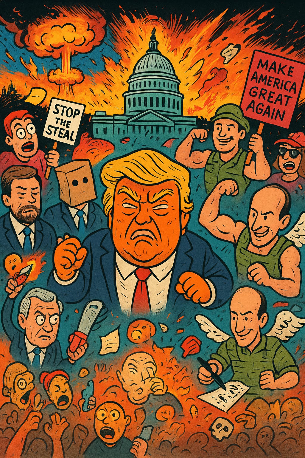 We are ten months into this shitshow, and it’s nothing short of a slow-motion trainwreck, except the train is piloted by a man with the attention span of a toddler on Red Bull and the moral compass of a moldy sock. Every day feels like watching a toddler who just discovered fire in a fireworks store, except the toddler has nuclear codes, a Twitter account with millions of followers, and a cabinet of human-shaped garbage bags full of greed, narcissism, and incompetence.