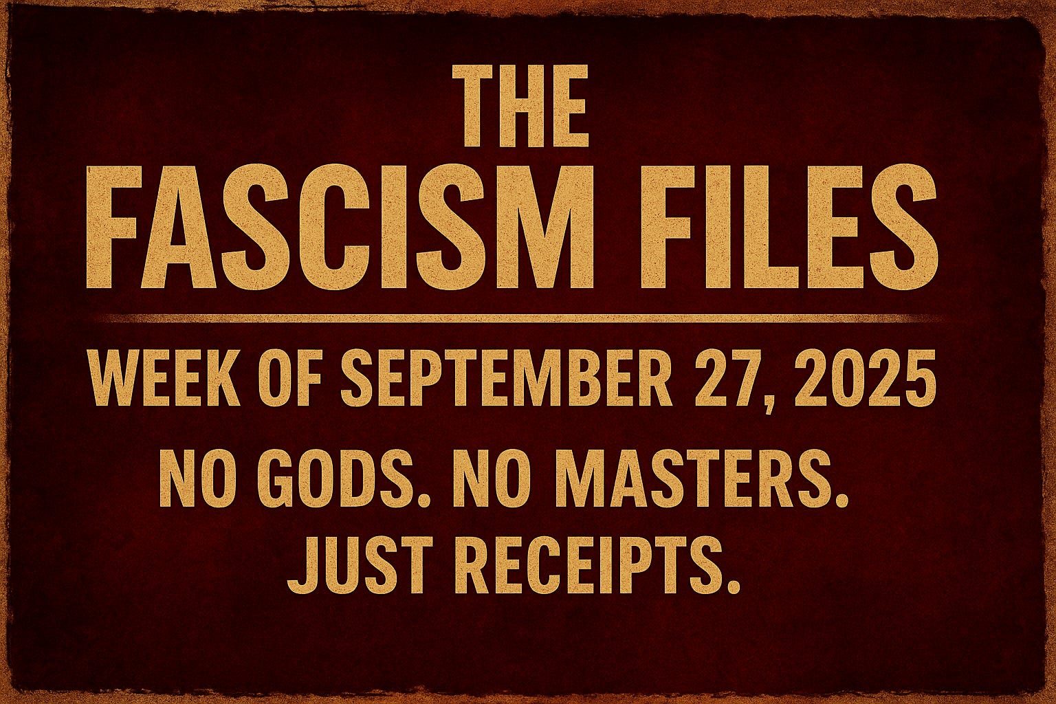 Listen up, friend. This week was a five-course buffet of fascist bullshit, served hot and steaming right from Trump’s kitchen. They’re criminalizing protest, weaponizing the DOJ, and rewriting the rules so fast your head spins. And if you blink, you’ll miss how fast dissent turns into “terrorism.”