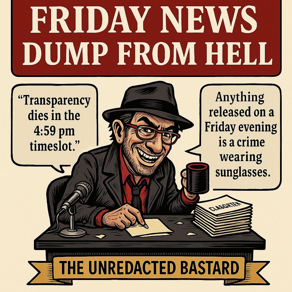 #UnredactedBastard #TruthBombs #CorruptionWatch #DemocracyDamageReport #FridayNewsDump #ReaderFunded