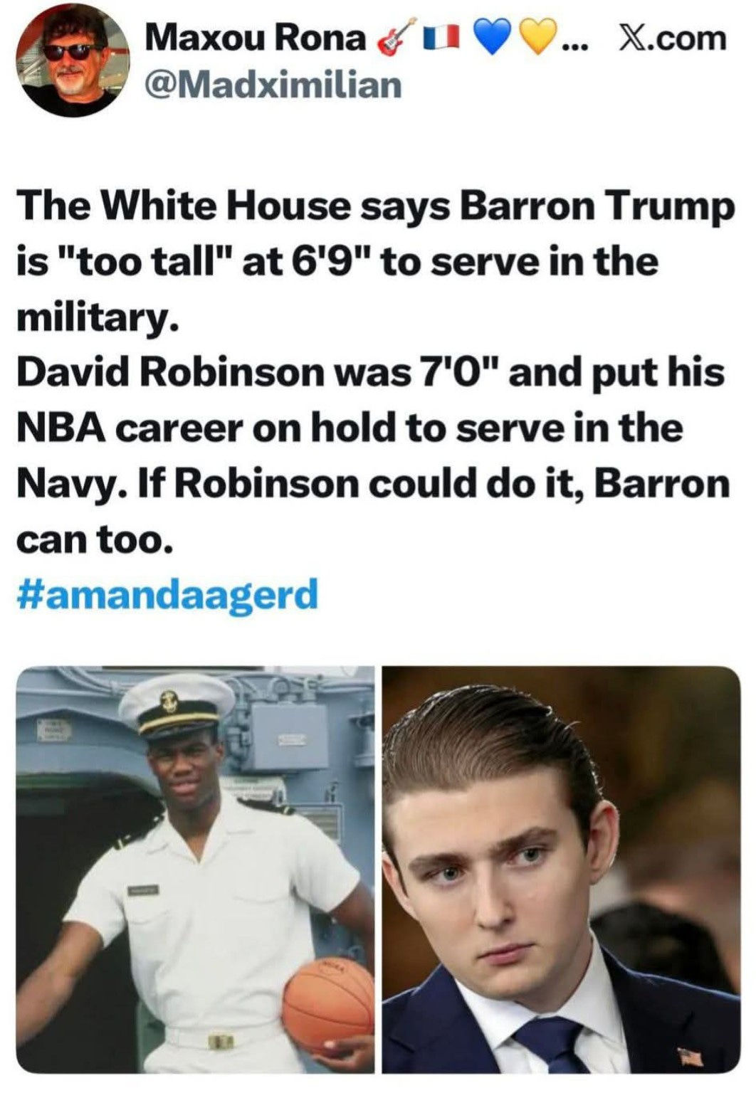 A viral story tore through social media claiming the White House said Barron Trump was “too tall” at 6’9” to serve in the military.