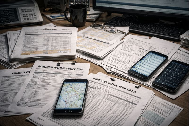 Administrative subpoenas targeting attorney-client communications. Absolutely legal. Absolutely obscene.