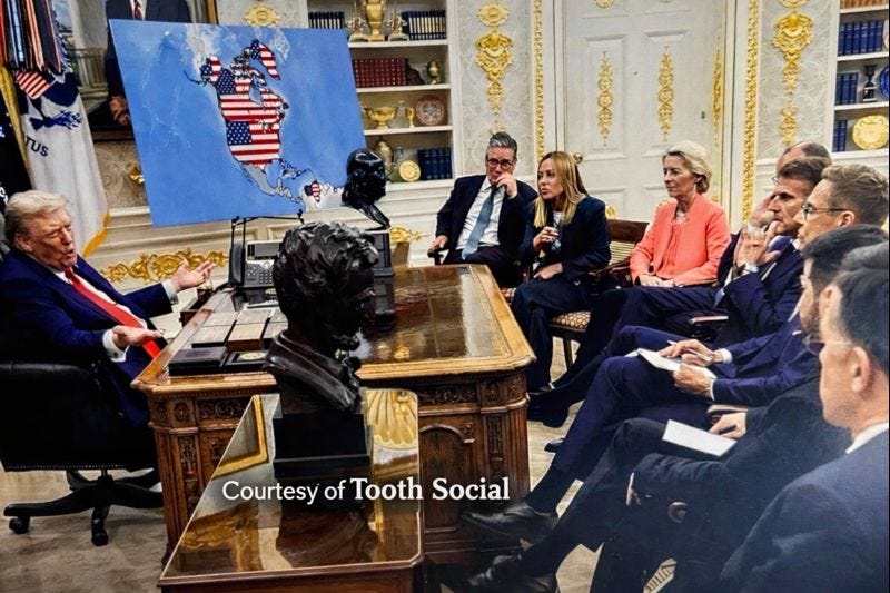 Watching Trump pitch territorial expansion to Europeans is like watching a pyromaniac hand out matches at a lumber mill and insisting he’s just “gathering feedback.”