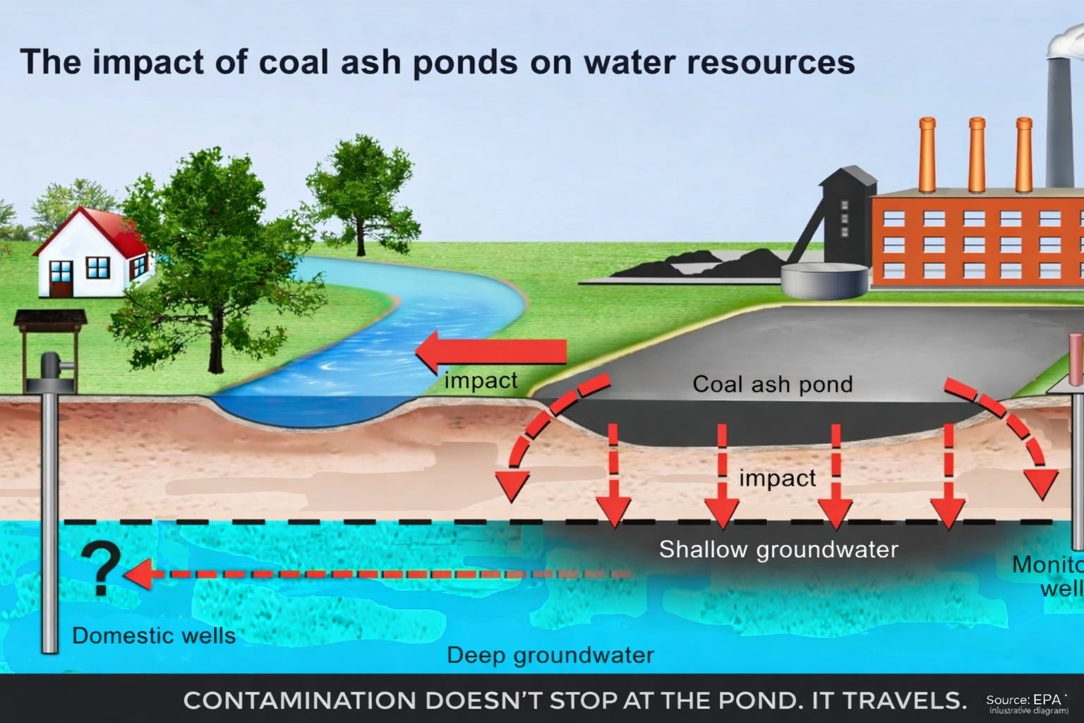 Weakening groundwater monitoring doesn’t “adjust reporting requirements.” It widens the window in which contamination can spread before anyone is legally obligated to give a shit. Limiting cleanup to where ash was physically dumped ignores the basic reality that poisoned groundwater doesn’t respect property lines. It moves. That’s what water fucking does.