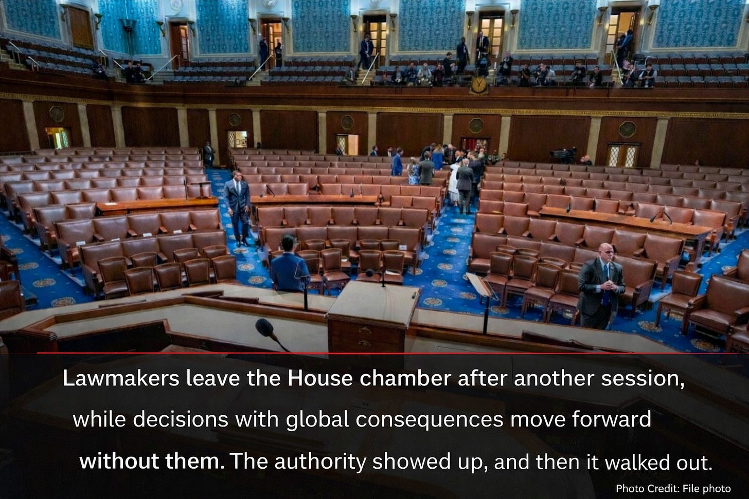 What used to require a national debate now gets handled by a handful of people in hours. Congress doesn’t authorize anymore. It reacts. After the fact, with a statement strong enough to screenshot and weak enough to mean absolutely nothing. The public doesn’t participate. It gets briefed, maybe, if someone decides it’s owed that much.