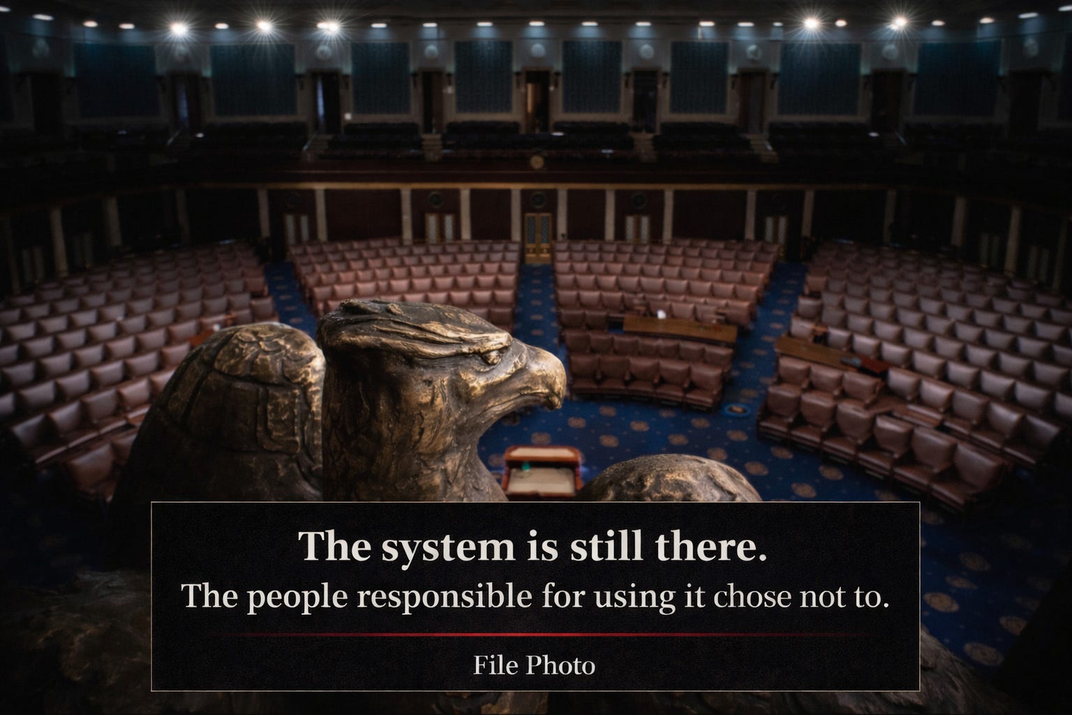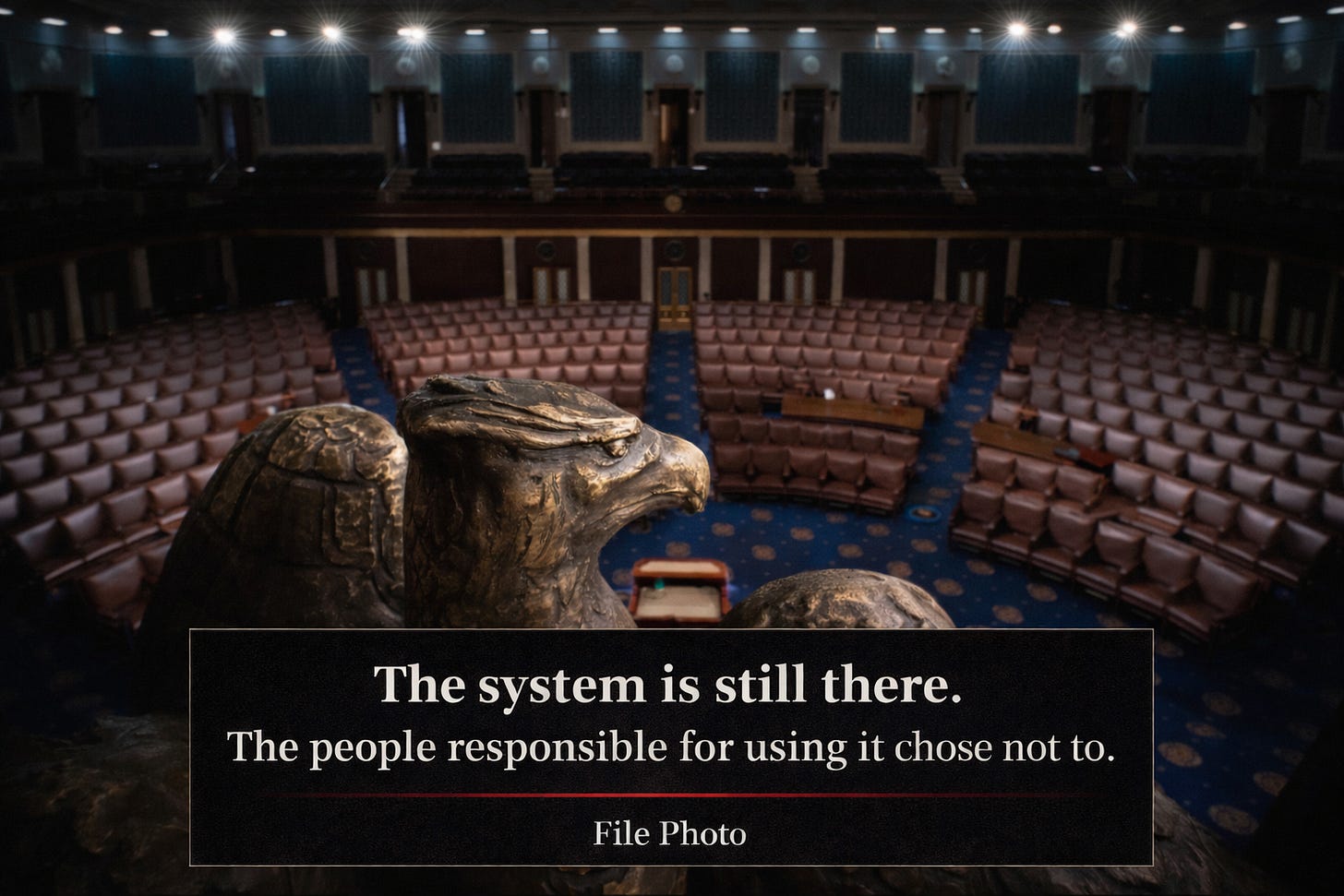 What actually exists isn’t an automatic system. It’s a chain of human decisions stacked on top of one another, each one depending on whether someone is willing to step in and take a hit. When that willingness disappears, the checks don’t activate, the balances don’t shift, and nothing snaps back into place. The system doesn’t crash. It keeps moving forward exactly as it was pushed. A car with no brakes rolling downhill while everyone inside argues about who’s technically responsible for stopping it.