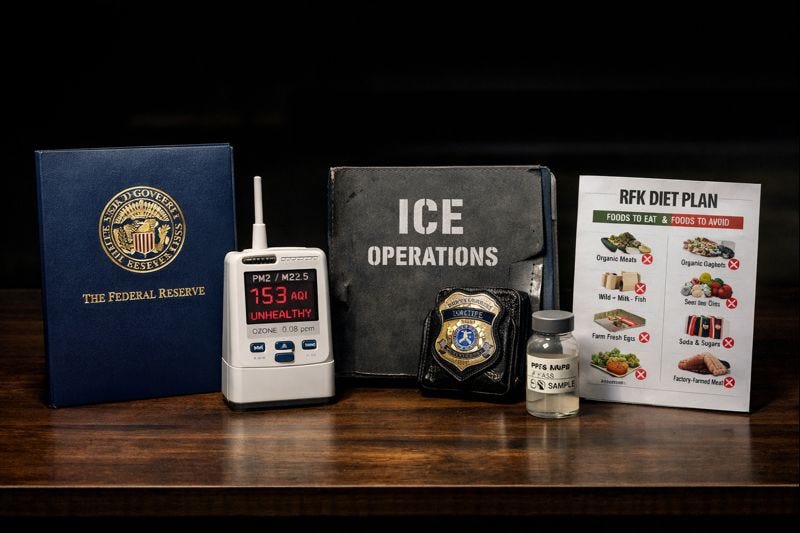 What moved power this week was not the circus about men eating raw poultry as proof of courage against the “tyranny of food safety.” That was merely comedy: a tribe attempting to differentiate itself from the herd by ingesting pathogens. The real action was monetary, regulatory, biological, and territorial. Those are the quadrants where modern authoritarianism secures permanence.